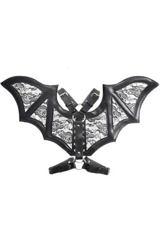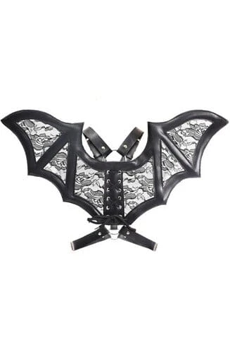 Black/Black Faux Leather & Lace Wing Harness