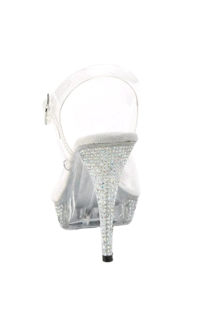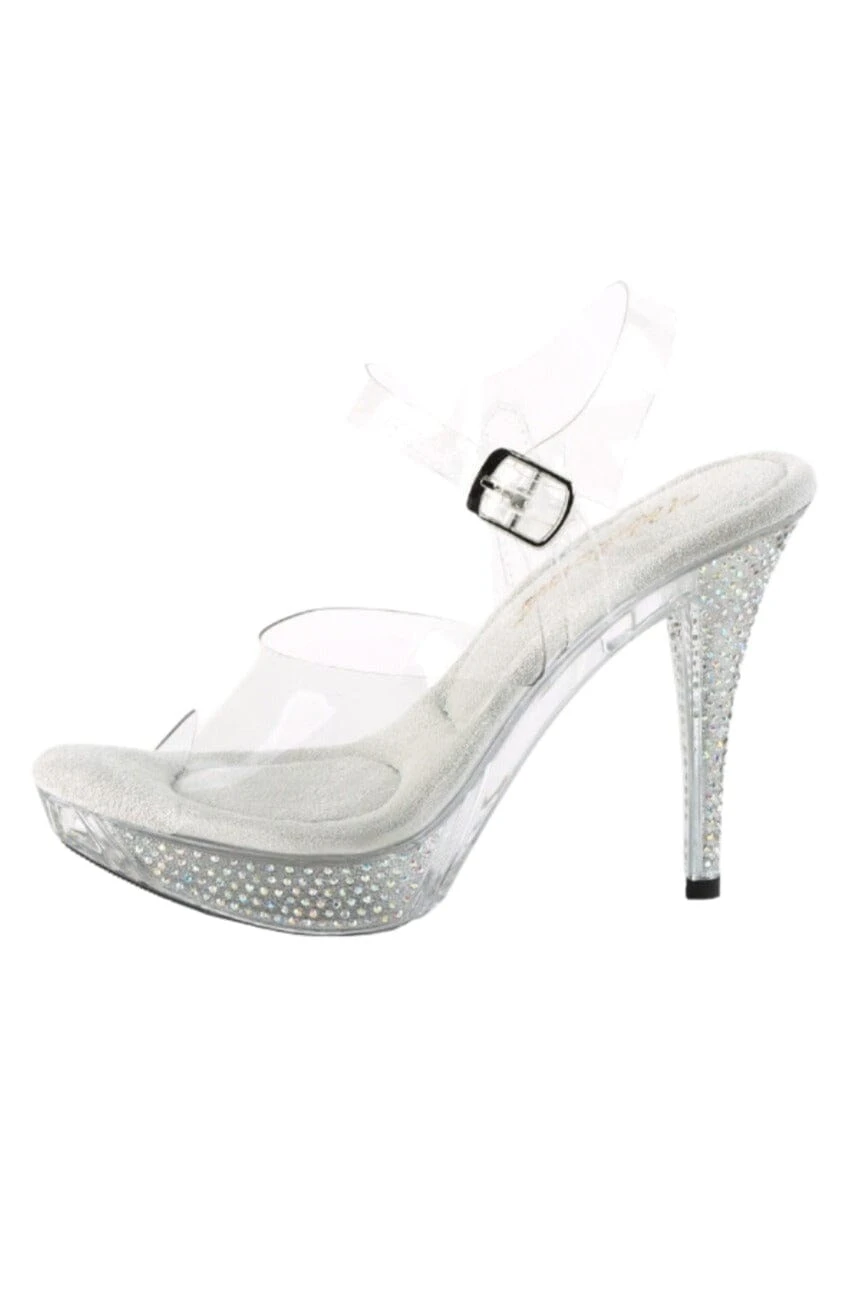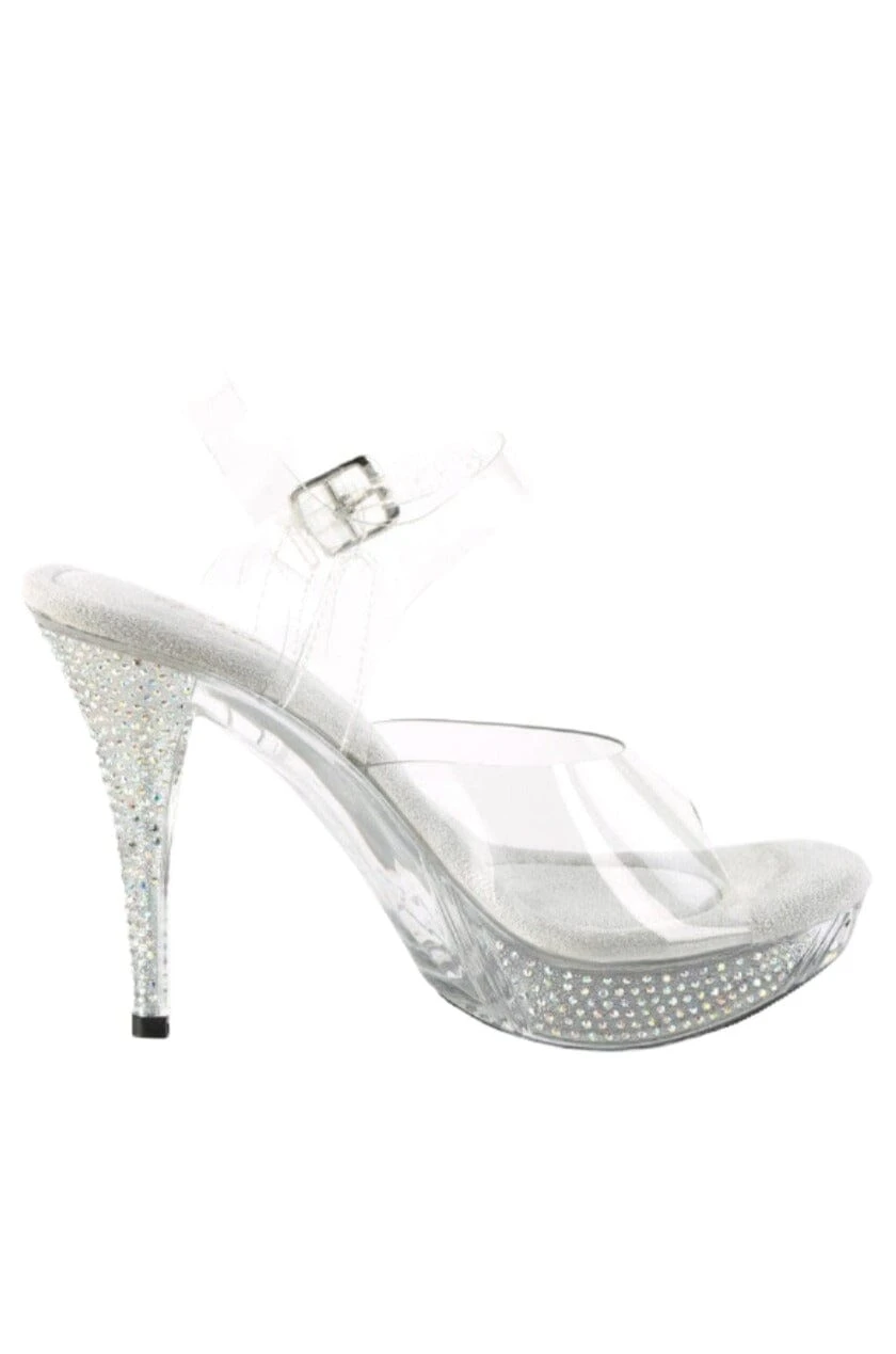 4 1/2″ Heel, 1″ Platform Ankle Strap Sandal with Rhinestones