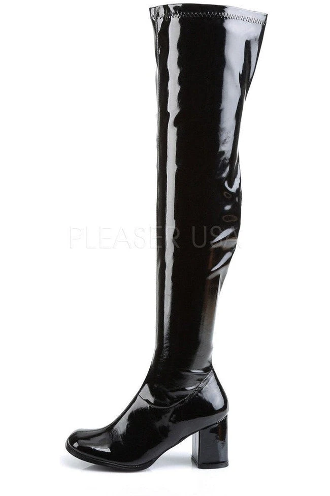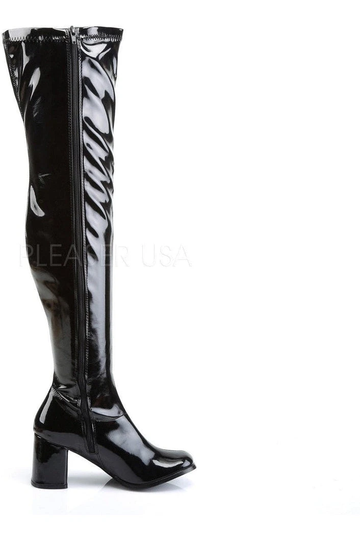 3″ Block Heel Gogo Boot With Stretch Patent & Side Zipper