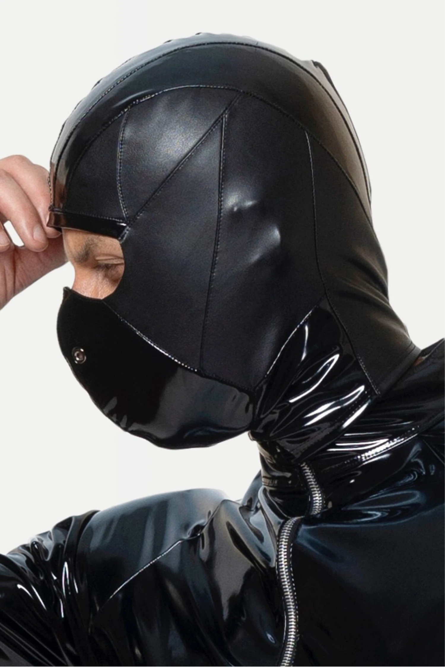 Indulge your inner fetishist with HARALD Vinyl hood. Designed with black vinyl and faux leather, only your eyes will be visible, adding an air of mystery. Featuring a back zip, nose eyelets for breathing, and a foam lining for extra comfort, this hood is the ultimate accessory for any thrill-seeker.