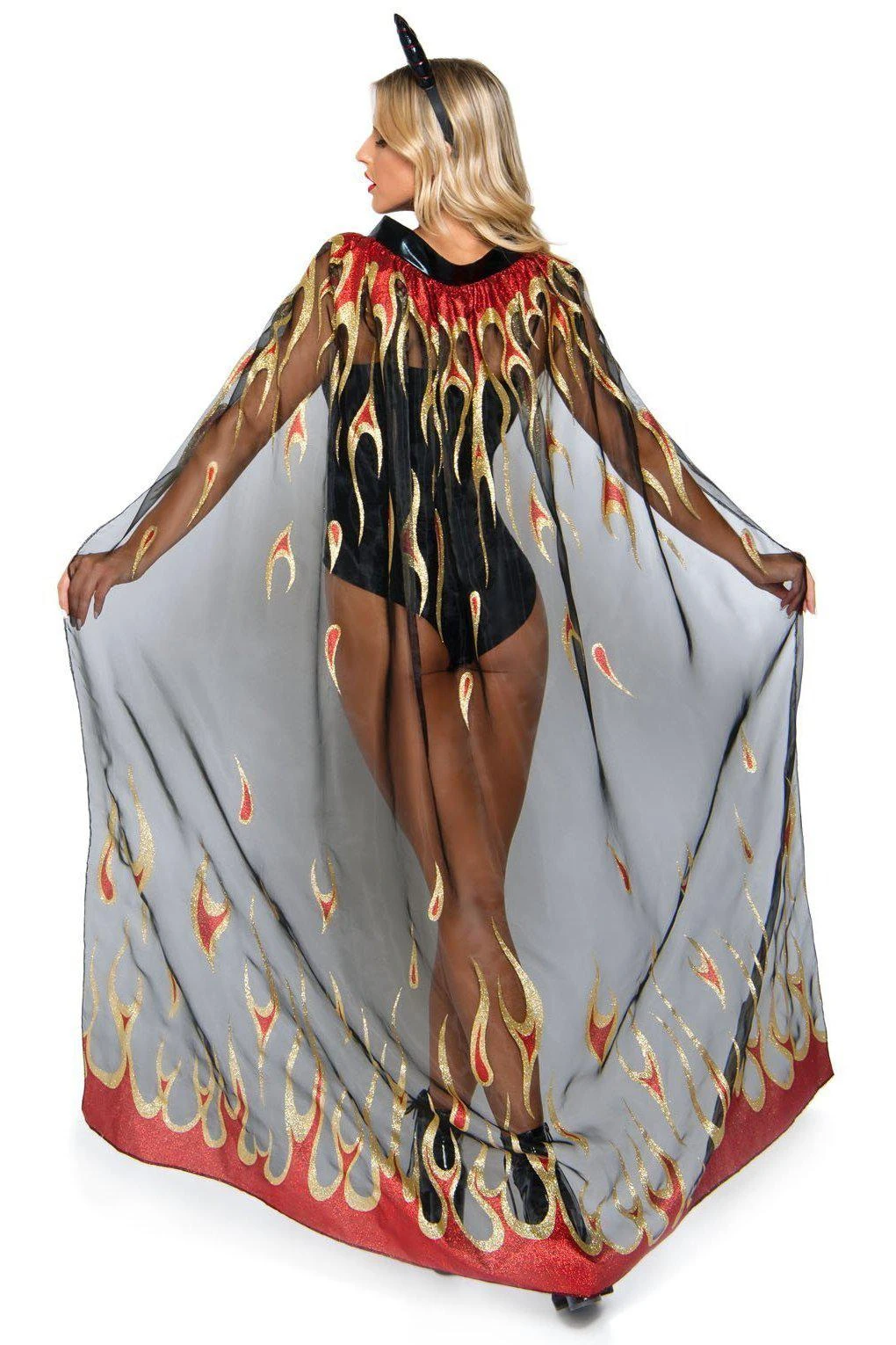 Leg Avenue 2 Piece Sheer glitter flame devil cape and devil horns.
