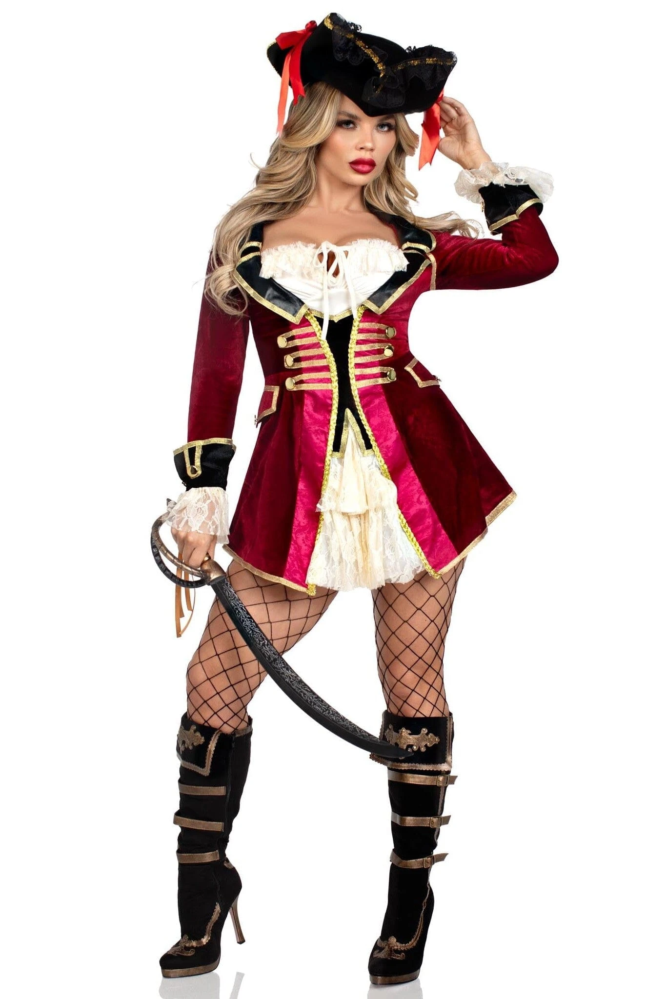 Captivating Pirate Captain Velvet Coat Dress, Tie-Front Bodice