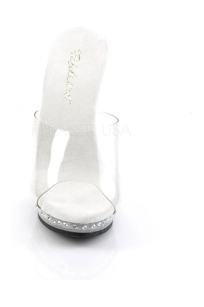 5″ (12.7cm) Heel with 3/4″ (1.9cm) Platform Slide Featuring one Line Rhinestones on the Heel and Platform Bottom