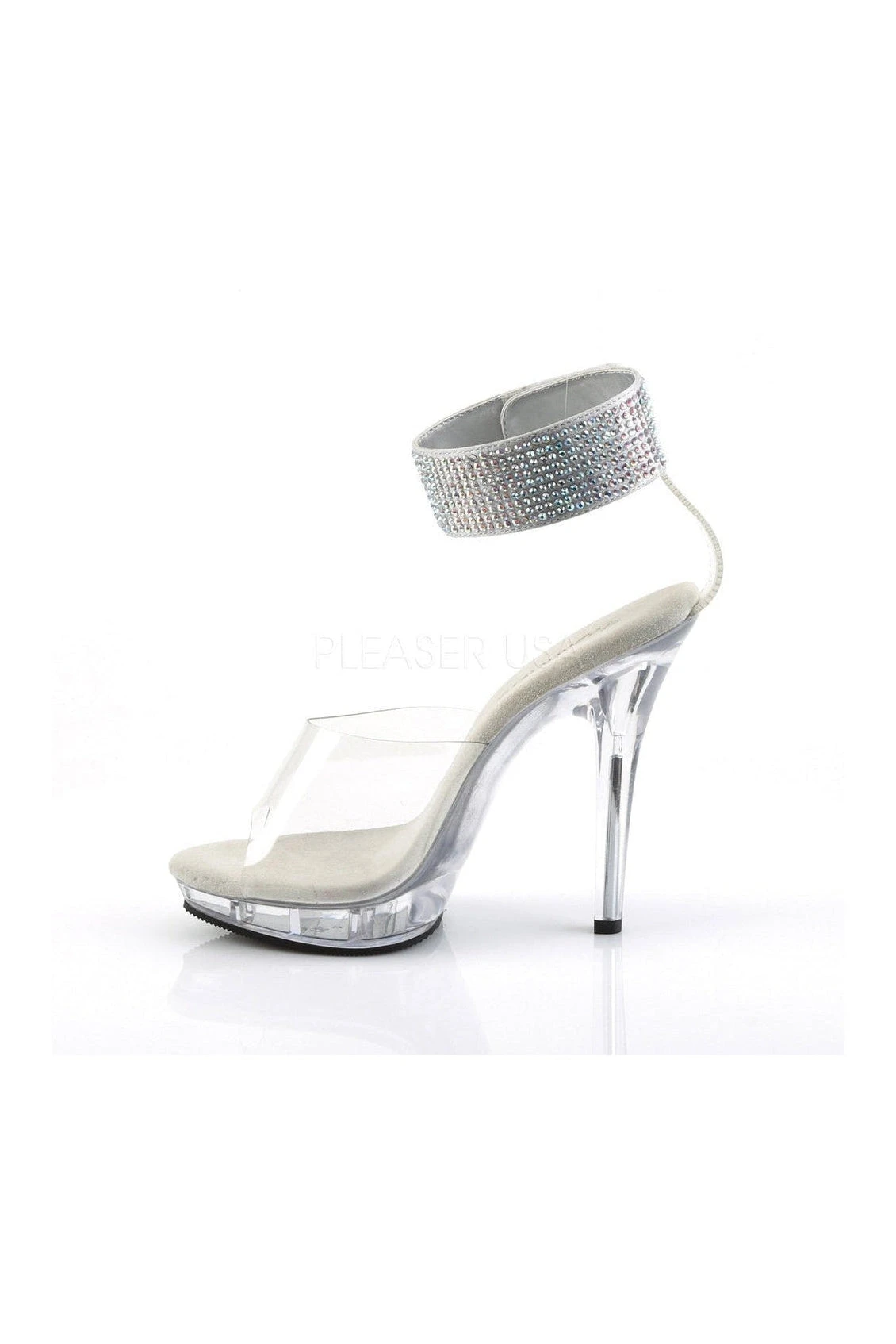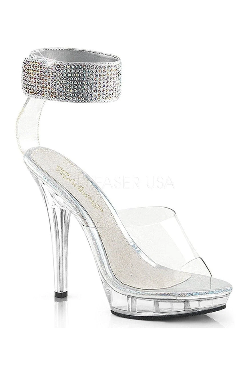 5″ (12.7cm) Heel with 3/4″ (1.9cm) Platform Sandal Featuring Wide Ankle Band Fully Covered with Rhinestones