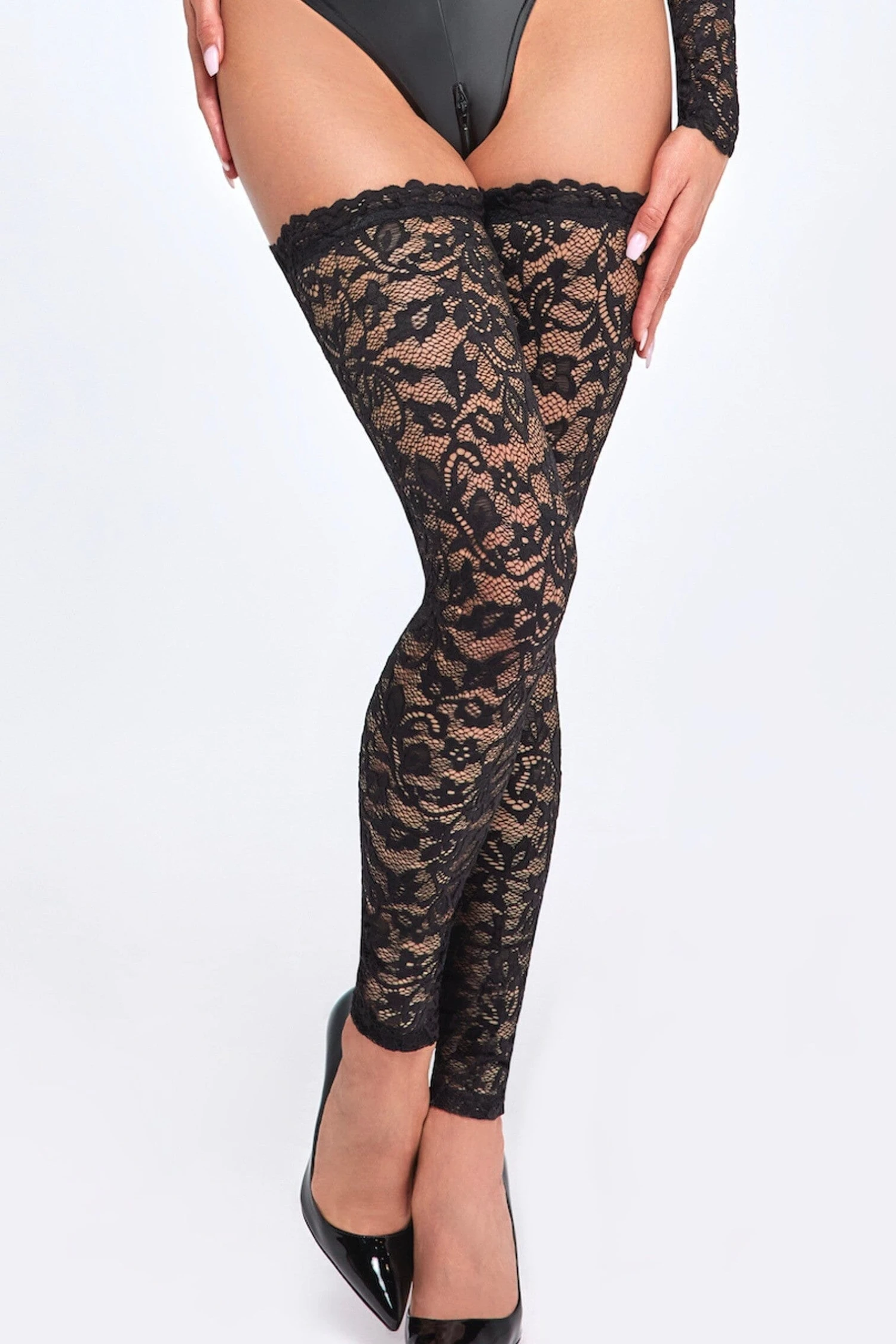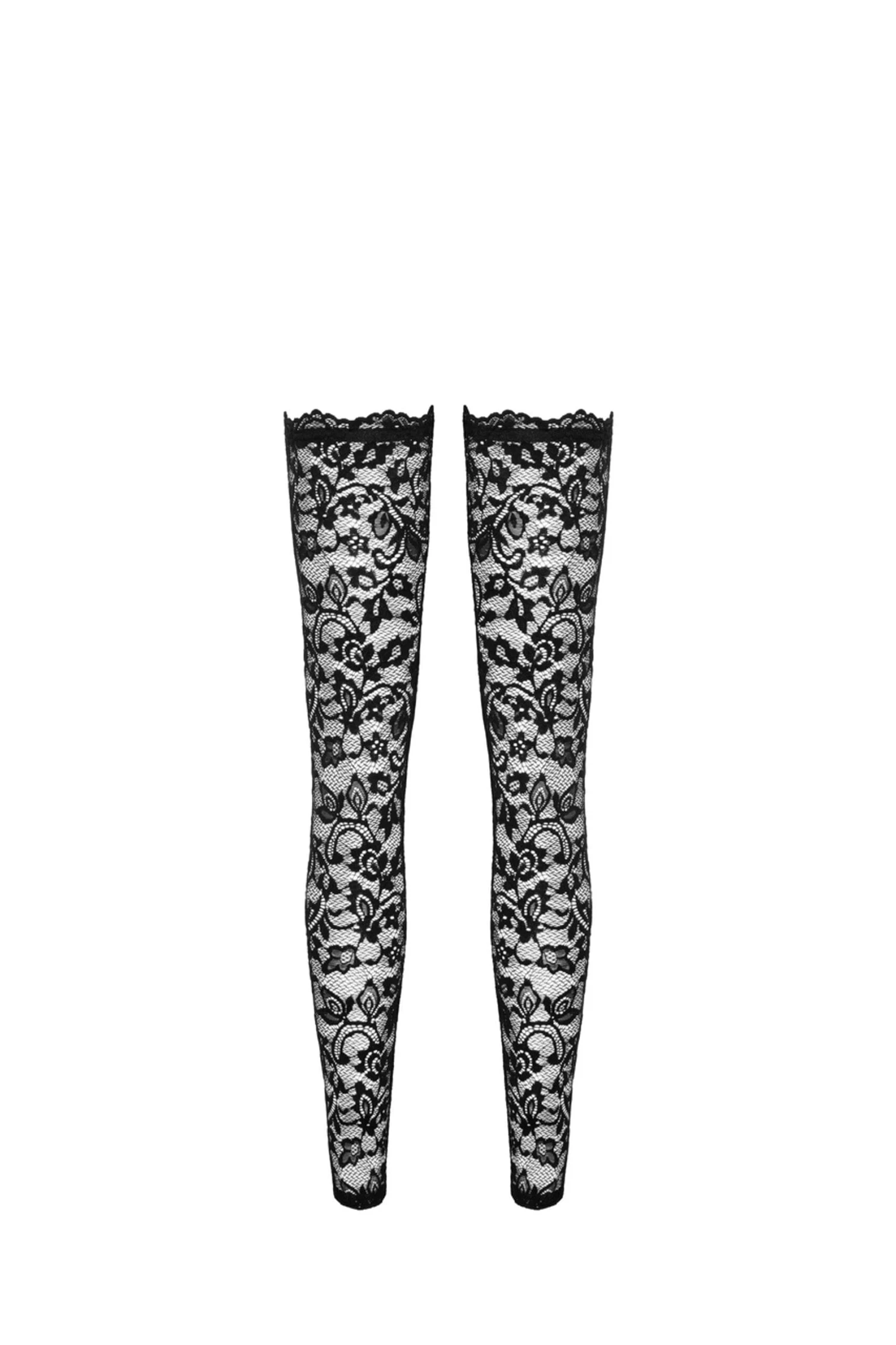 Beautifully crafted with delicate floral patterns, these black lace stockings are made from stretchable fabric to ensure both a comfortable and form-fitting wear. The thigh-high cut is accentuated by reinforced cuffs featuring silicon tape, providing a secure and elegant fit. From formal events to fashion-forward occasions, these stockings seamlessly blend with any outfit and elevate your style. The intricate lace material offers both breathability and full coverage, making them a practical yet luxurious addition to your retail collection.