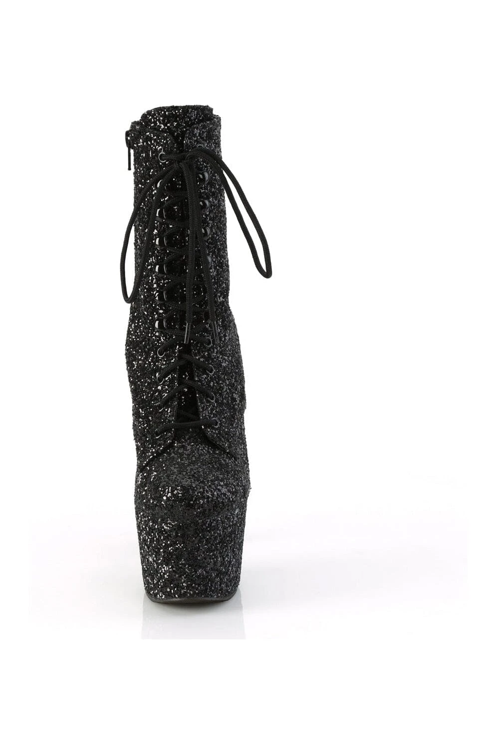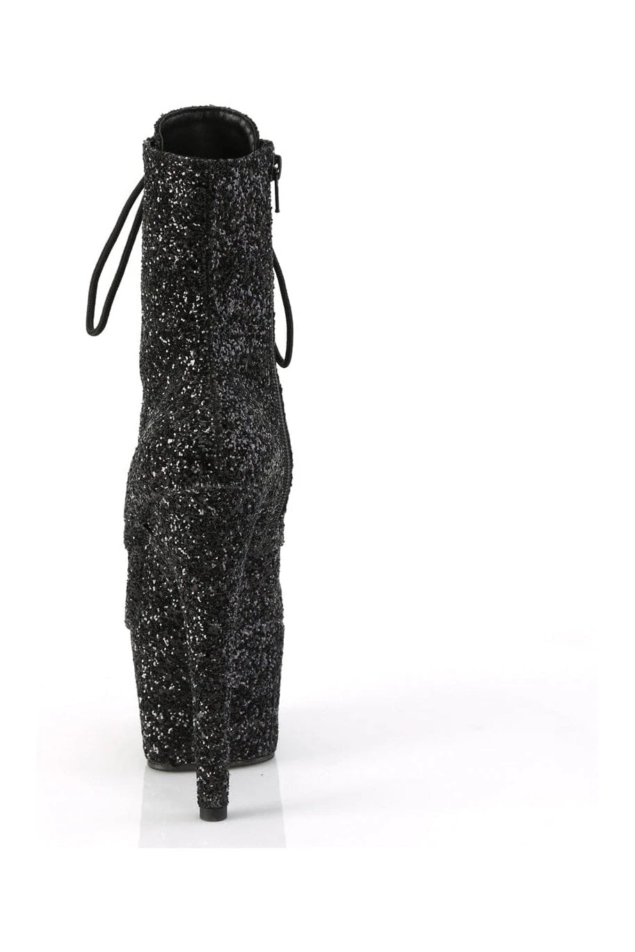 7″ Heel, 2 3/4″ Platform Lace-Up Glitter Ankle Boot, Side Zipper