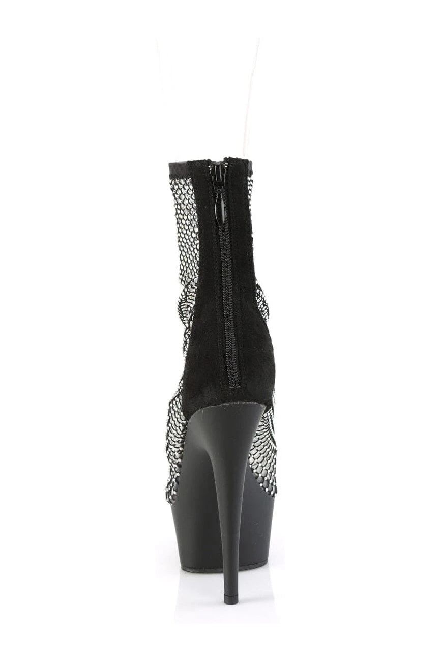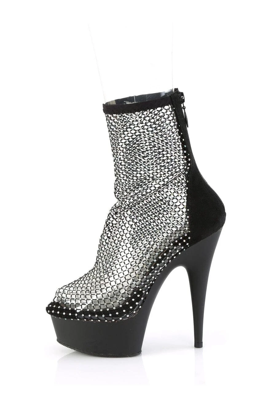 6″ Heel, 1 3/4″ Platform Rhinestone Mesh Ankle Boot, Back Zipper