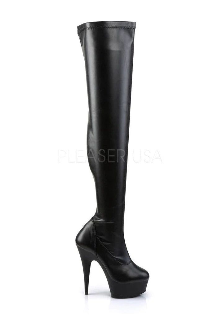 6″ (15.2cm) Stiletto Heel 1 3/4″ (4.5cm) Platform Stretch Thigh High Boot with & Full-Length Inside Zip Closure