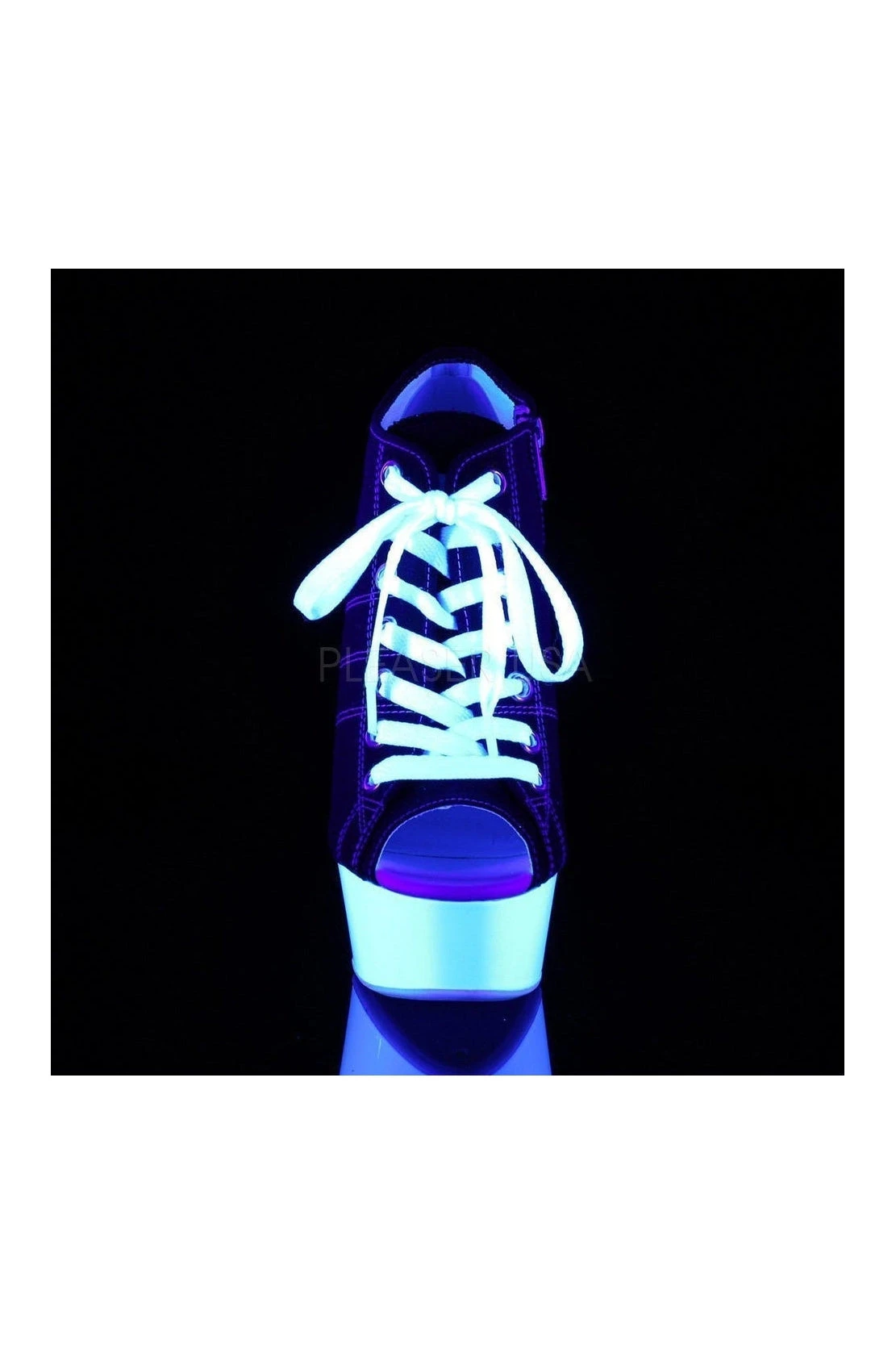 6″(152mm) Heel, 1 3/4″(45mm) Platform Open Toe Lace Up Front Canvas Sneaker Featuring Blacklight Reactive Platform Bottom, Full Inside Zip Closure