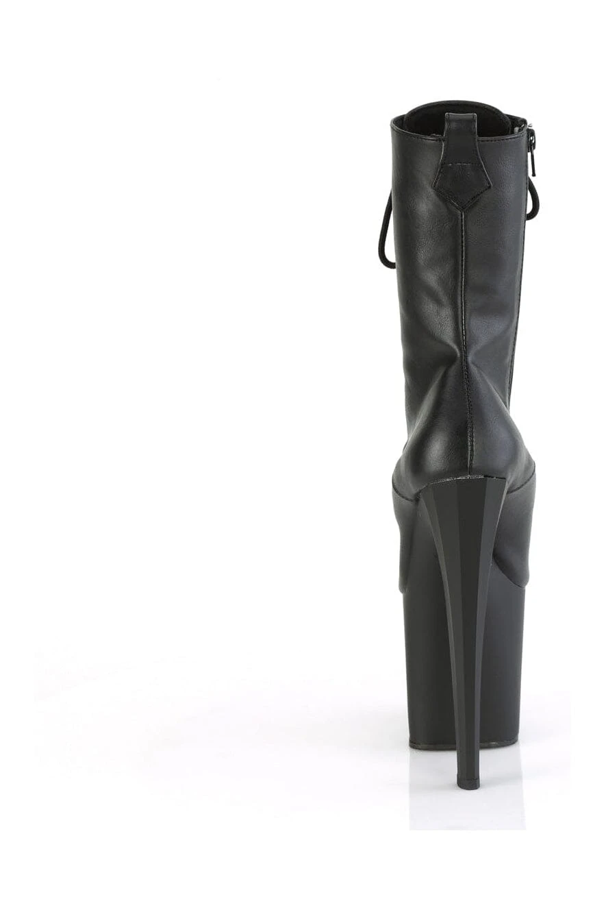 7 1/2″ Heel, 3 1/2″ Platform Lace-Up Mid Calf Boot, & Side Zipper