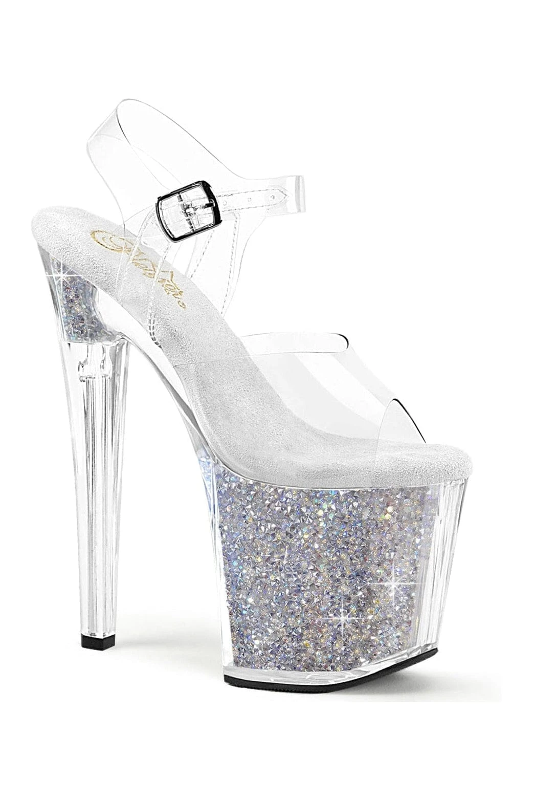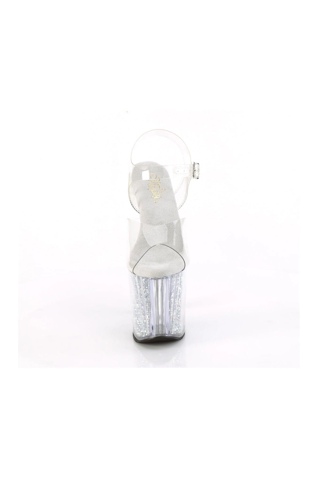 7 1/2″ Heel, 3 1/2″ Platform Ankle Strap Sandal with Rhinestones Inserts