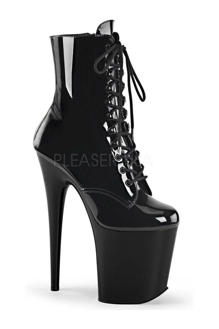 8″ (20.3cm) Stiletto Heel 4″ (10.2cm) Platform Lace-Up Front Ankle Boot Inside Zip Closure