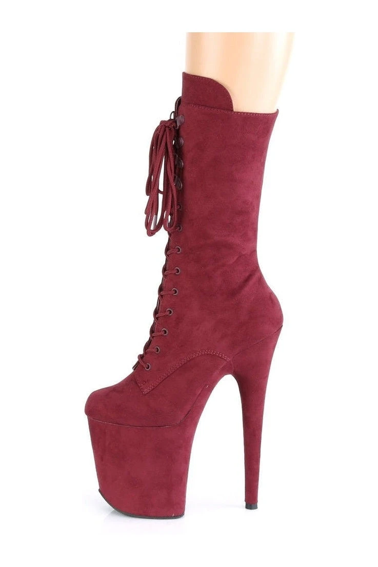8″ Heel, 4″ Platfrom Lace-Up Front Mid Calf Boot, Side Zipper