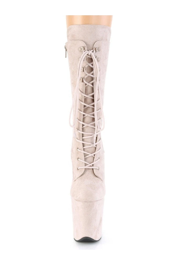 8″ Heel, 4″ Platfrom Lace-Up Front Mid Calf Boot, Side Zipper