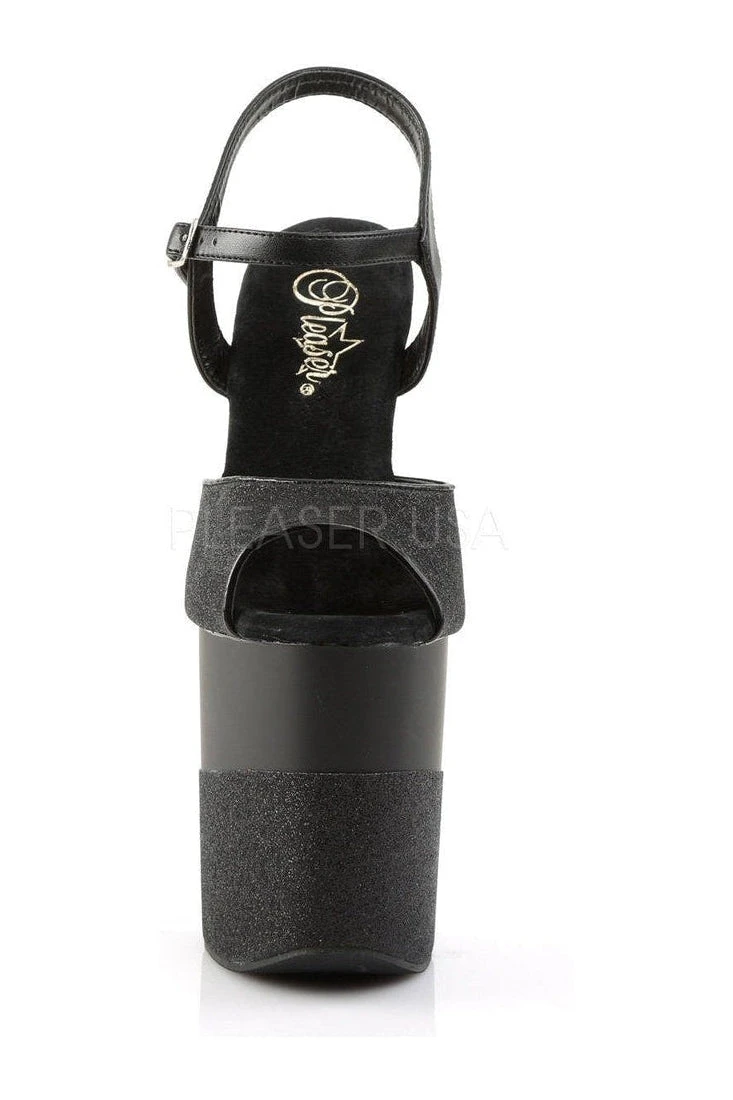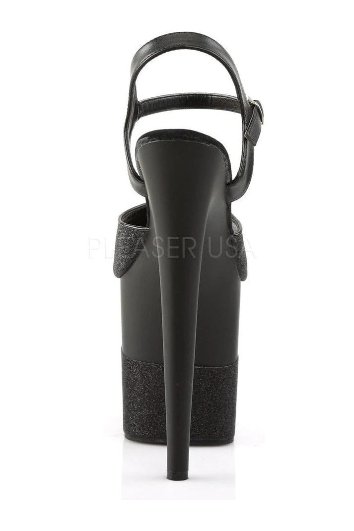 8″ (20.3cm) Stiletto Heel 4″ (10.2cm) Platform Ankle Strap Sandal Featuring Half Glittered Platform