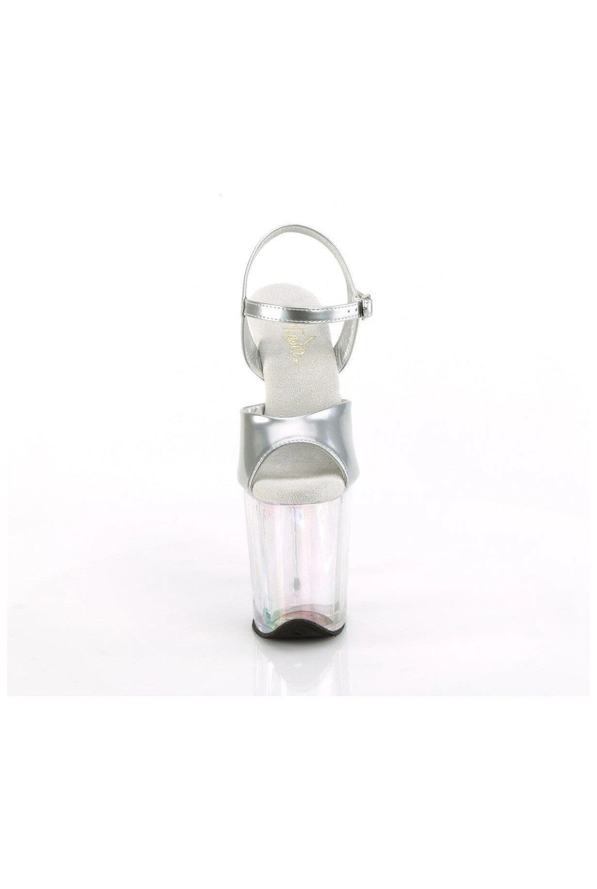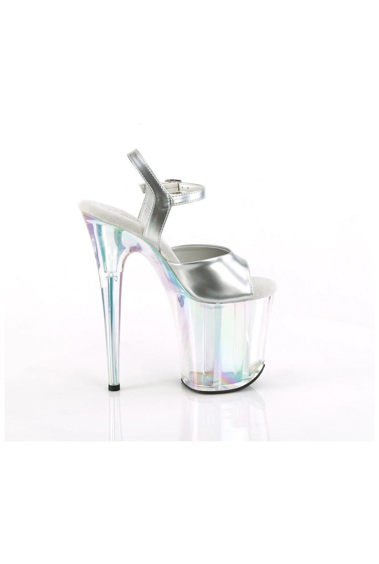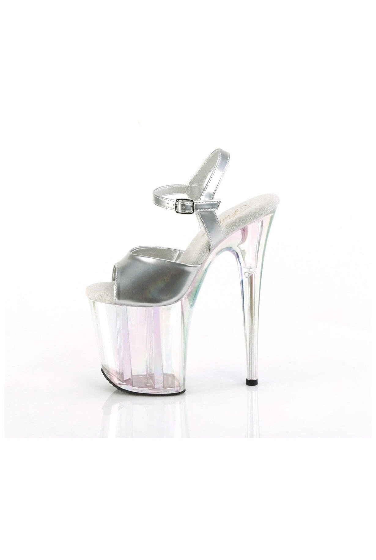 8″ Heel, 4″ Holo Tinted PF Ankle Strap Sandal