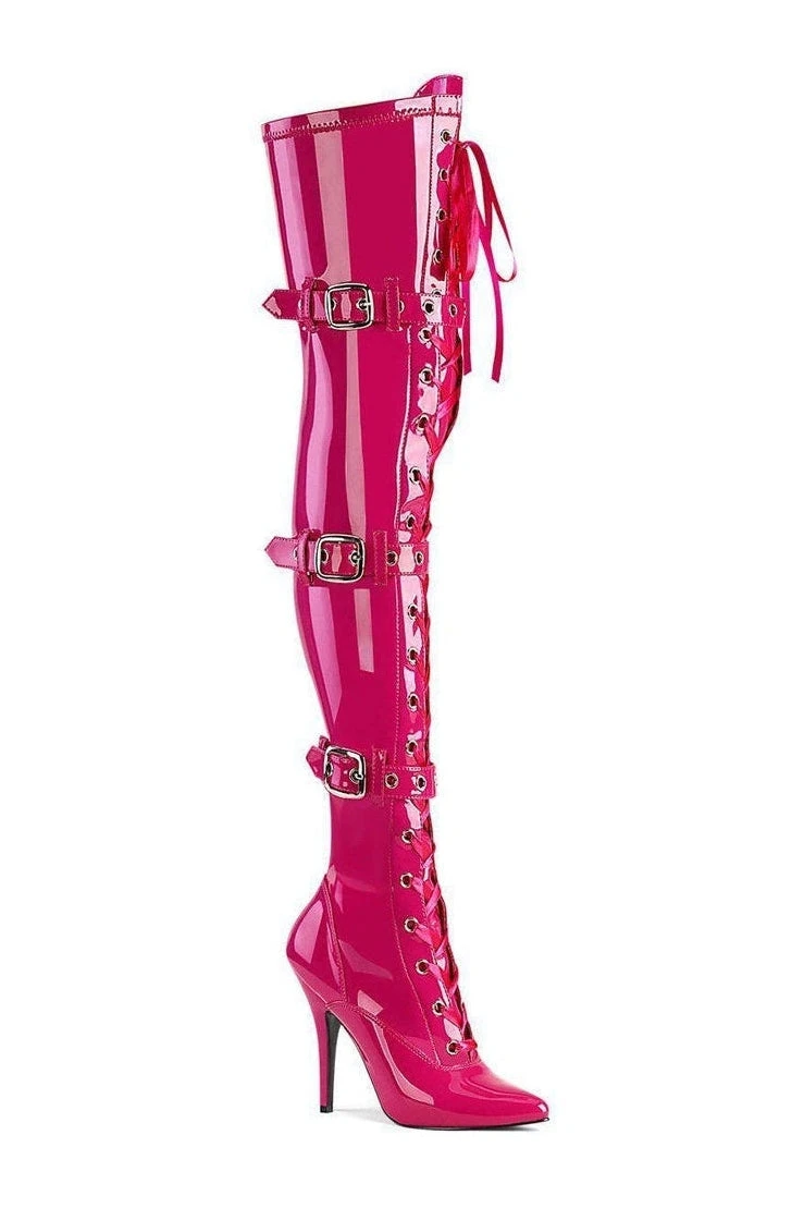 5″ Heel Lace-Up Triple Buckle Strap Thigh Boot, Side Zipper