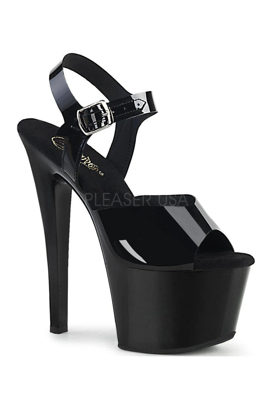7″ (178mm) Heel,, 2 3/4″ (70mm) Platform Ankle Strap Sandal