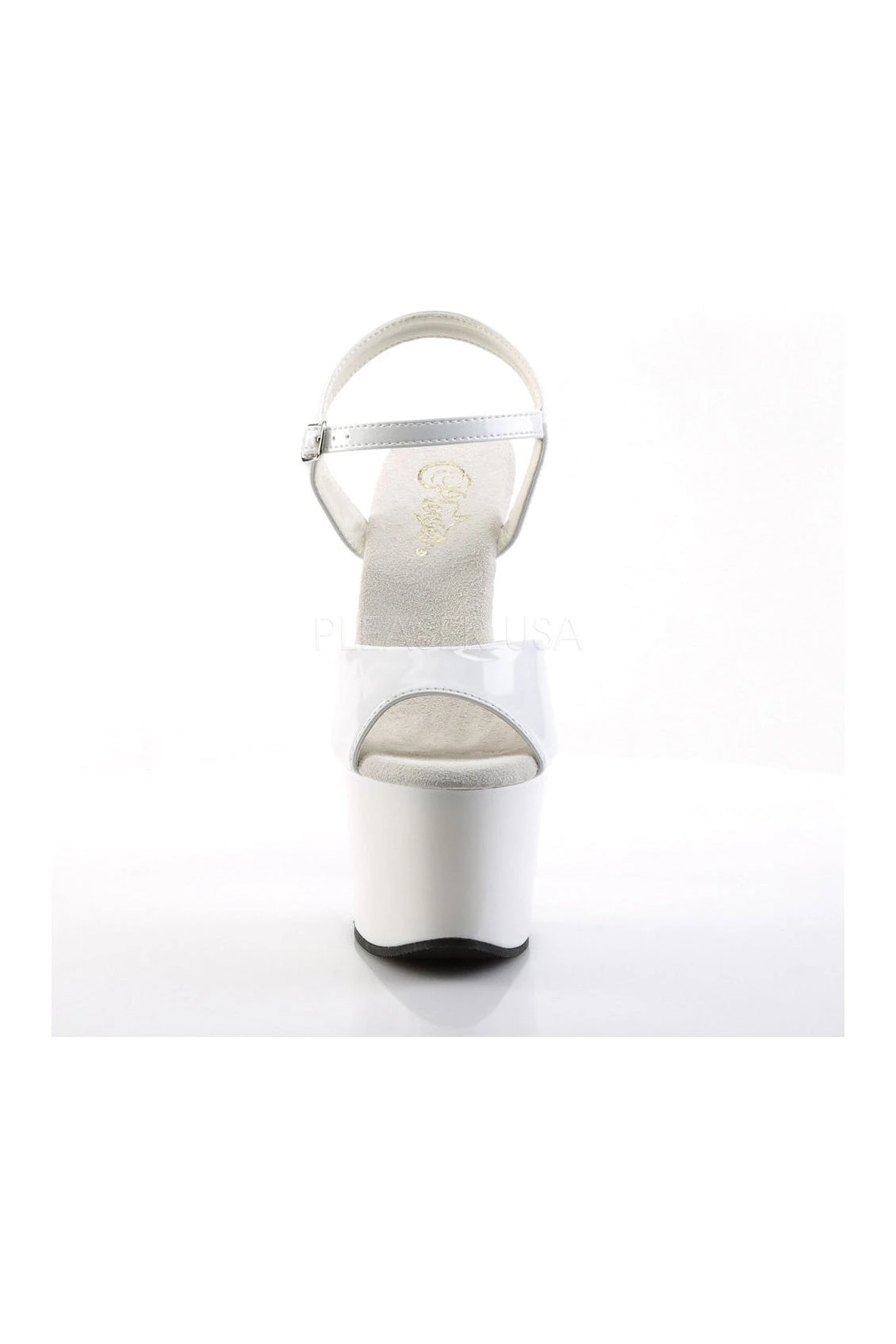 7″ (17.8cm) Heel 2 3/4″ (7cm) Platform Ankle Strap Sandal Featuring Vegan Leather Insole