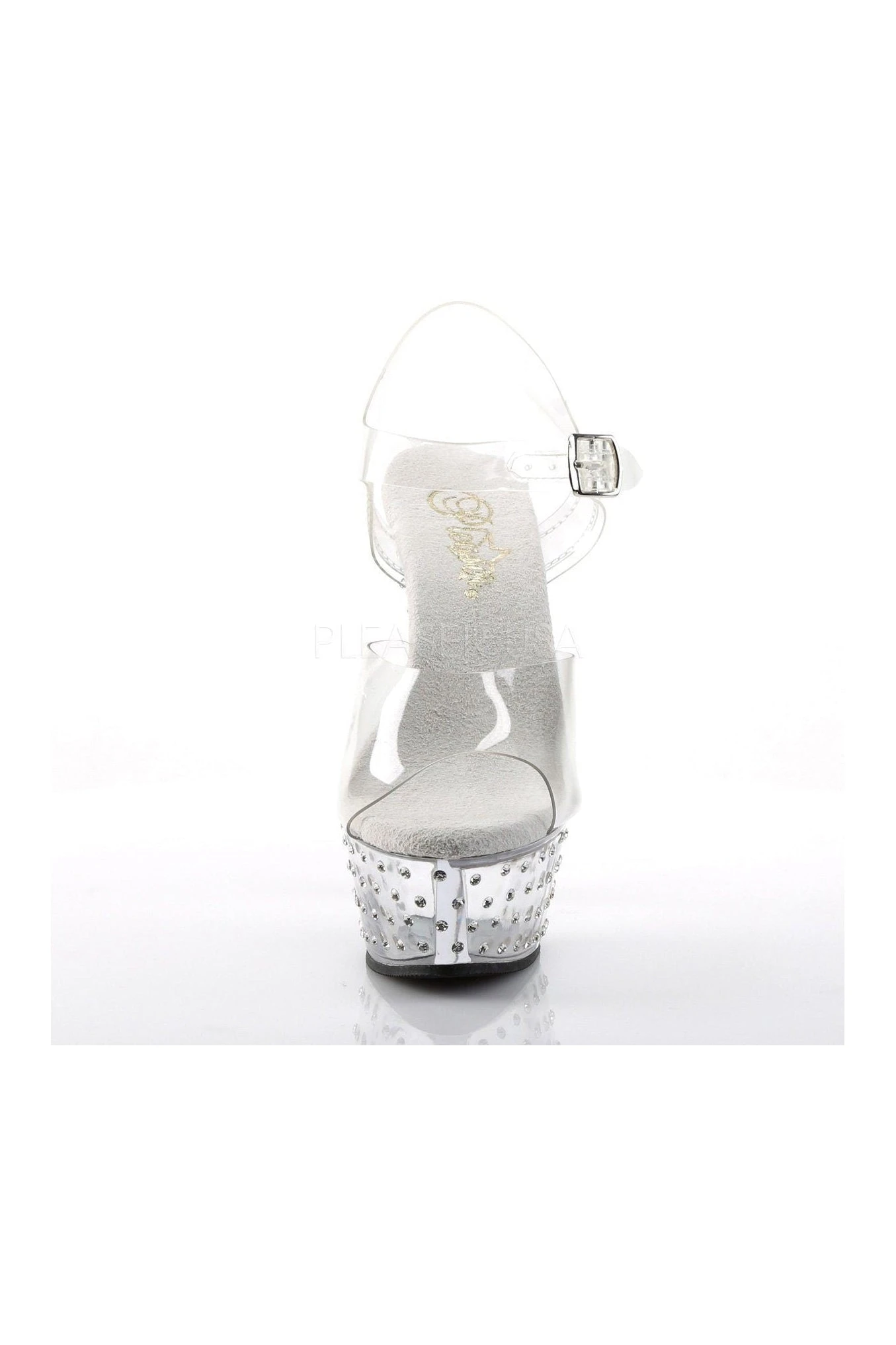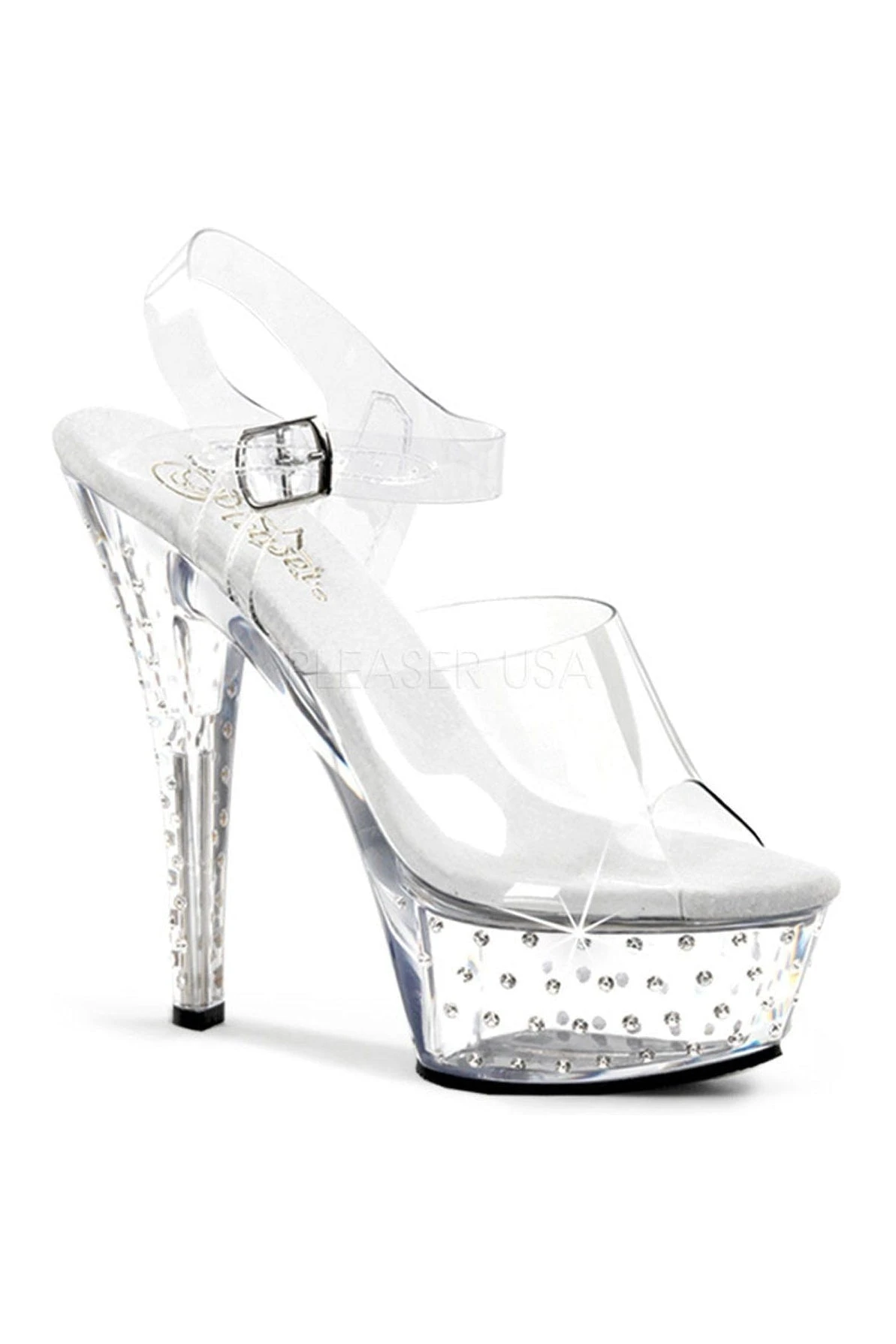 6″ Heel (15.2cm) 1 3/4″ (4.5cm) Platform Ankle Strap Sandal Featuring Rhinestone Studded Platform