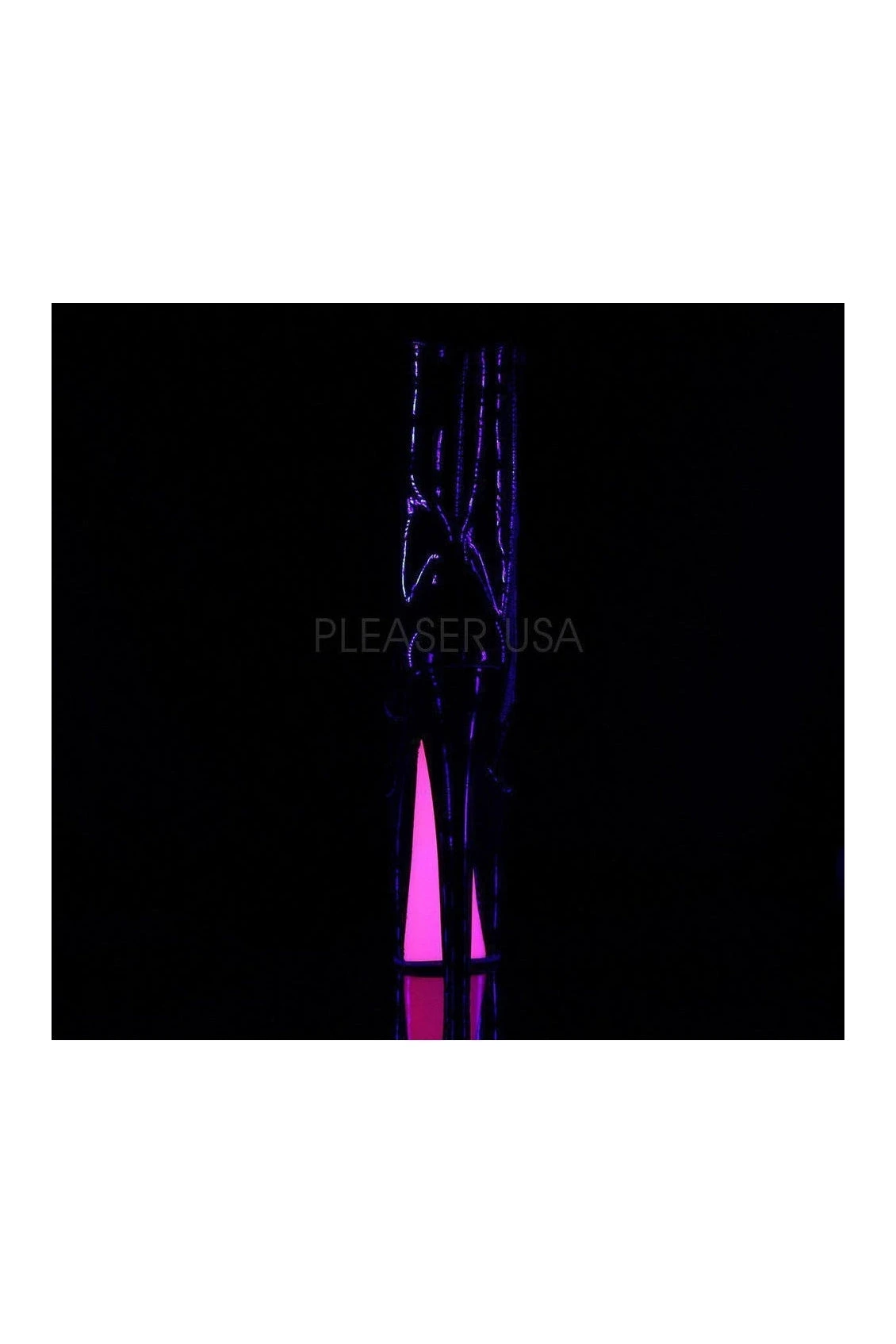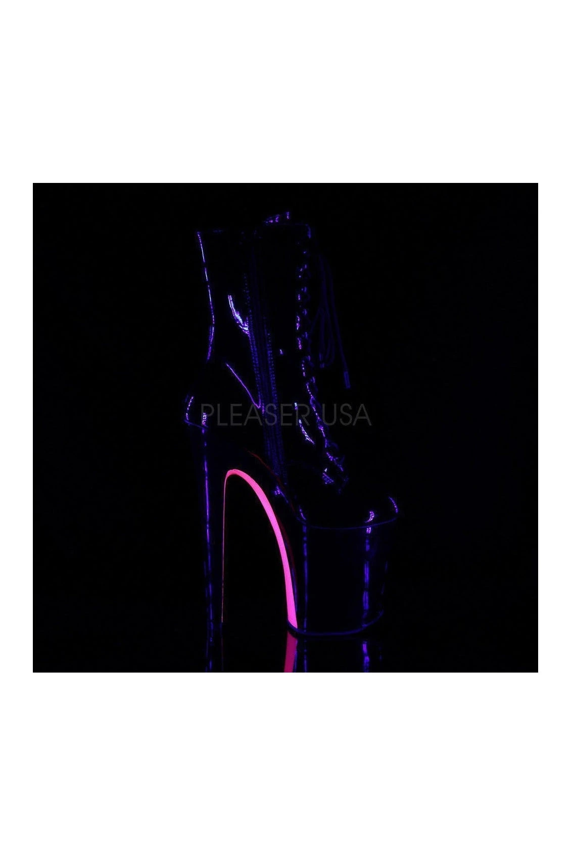 7″ (178mm) Heel, 2 3/4″ (70mm) Platform Lace-up Two Tone Ankle Boot Featuring Blacklight Sensitive Contrast Color Inner Side of Heel & Underside of the Platform Bottom, Inside Zip Closure