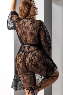 Coquette Full Length Satin And Eyelash Rigid Lace Robe With Sash