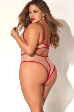 Plus Size Mesh With Faux Leather Trim Bodysuit